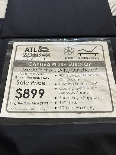 Read moreI would definitely recommend this mattress store to anyone who is in the market for a new mattress. The service that I received at this store was above and beyond what I expected. The gentleman who helped me was very knowledgeable about the mattresses and was very patient with me, all the while taking his time to answer any questions I might have! I did not feel pressured to make a purchase however I did find the perfect mattress for me a great price! I can honestly say that I left there feeling as though I had made a quality purchase and a purchase in which I really felt good about and it’s been a while since I can honestly say that. So, if you are in the market for a new mattress and a unbelievably great price this is the place to go hands down the best mattress store in town. You will not be disappointed! So before you go anywhere, go to this store and you will see that your money goes further and you may even get extras as I did from the money you saved! I was able to finally afford to upgrade from a queen to a king!!! You can thank me later, and I myself will definitely...
