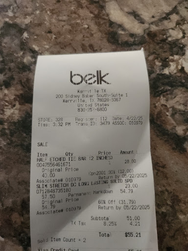 Ā Ā Ā Read moreI just love going to my local Belk retail store at the Riverhills Mall, in Kerrville, Texas. If you have never shopped at Belk, you will also find quality clothing, housewares, fragrances, bedding & more. I have this thing about nice, quality menswear. I don't mind spending a little extra for quality. But somehow aBelk 've come to expectWhen I go into my local Belk, I feel like I am met with this explosion of color. I'm sure there is some sort of retail science that knows exactly how to elicit that response from me (I'm so predictable). But I love it!! So they know what they are doing. Modern & up-to-date. I especially like the PGA Tour line. Very high-quality fabrics that hold up well on those hot central Texas afternoons on the golf course. The middle of a round of golf is not the time to find out that your ill-fitting, cotton twill Dockers are uncomfortable. I hate Dockers. You cannot find those PGA Tour brand, microfiber, 4way stretch fabrics, anywhere else in Kerrville & the price is so reasonable. Typically in the $30-$40 price point. Incredible! I don't know how they do it. When it comes to things like blazers & sports coats, my local Belk is well stocked with variety. Often with colors, you might not expect. Again, with innovative, summer-weight fabric that breathes. They hold up under the central Texas, Hil Country sun. You won't find that quality at JC Penny or Walmart. There was this one time when I found this sports coat I really wanted. That particular day they we're running this special ... buy 1 blazer or sports coat, get 2 free!! Amazing! I wasn't particularly looking for it, but I walked out with 3 very nice jackets. Add simple blazer to just about any trousers or even nice blue jeans, you have a mature, gentlemanly presentation. They work equally well at the casual office or on a date. I won't buy my clothing over the internet. But sometimes, when I am in the store, the staff might suggest placing an order for me. Something I just have to have (hey I want what l want). Typically, however, I have to touch it & know what I am getting. For instance, I recently bought a Bill Adler tooled leather, feathered conch belt from Poshmark. The belt is absolutely beautiful & the one I bought was intended to replace the one I have. I wore it out. However, I wasn't careful. I thought I was getting a size 38.5. Turns out this belt was a size 34 (guess I better lose some weight). One of my "things" are buttons. Isn't it so dang irritating to buy a button-down collar or a blazer, then 3 weeks later the buttons fall off or break at the cleaners? Just because the brand uses cheap buttons. My clothing has to fit well. So I will pay to have something tailored, if necessary. When I buy from Belk, I find that I don't have to pay much on the back end. Because Belk offers such a wide selection. The Belk brand truly is "Modern Southern Style." It would be a real shame to lose our local Belk retail store. If that happened, I guess I would have to travel to San Antonio or New Braunfels to shop. Texas is pretty big & that would be over a 100 miles round trip. I live within walking distance of my Belk store. There have been many an evening when I am bored around the house. Belk is open until 9 pm, so I walk over & kind of "window shop." Ostensibly to get some ideas. But I have to leave my wallet at home. How many times have I gone "for a walk," & wind-up spending a couple of hundred $$?? Belk rocks!...
