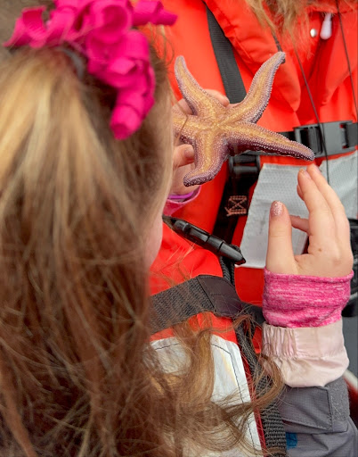 We started out looking at some sea stars, but suddenly, 15-20 minutes into our trip, we spotted a pod of three whales. Eric kept us a safe distance from them but kept us pointed in the right direction so we could get tons of pictures and videos. They gave us quite the show! We watched them for at least half an hour and we were just absolutely amazed. After the whale sighting, I could have fallen into the cold water and still consider the day a ten out of ten.
