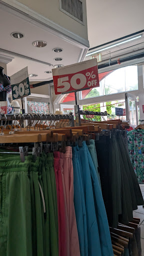 Scammy place! Have 50% ads on the door and a lot of racks giving the impression that the whole store is 50%. Items are not individually marked. I bought an outfit at night because my clothes were uncomfortable and once I put it on (after paying I asked if there's a place to change and the front desk lady showed me the changing rooms, I didn't see them before) I realized it didn't fit like I thought it would. At this point I left because my baby was fussy and I couldn't stay, I came the next day (today) to see if I could return them or exchange the clothes for something that actually fits. But they said it wasn't possible, they don't return, don't exchange. My husband asked for a receipt because we still didn't understand why they charged 160+ for two pieces but then understood that the sale is not applicable to the whole store. An expensive mistake in my part, I'll regift the clothes but I can see why most of their reviews are not good. Extra charging and staging like a sale place, will definitely not stop by...