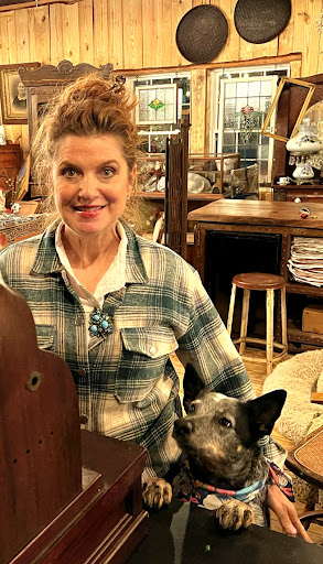 We were told the store wasn’t open and that the owners were remodeling. It is definitely OPEN again. The store is much bigger than last year. One of the nicest antique stores I’ve been to. I usually sit in the car when my wife goes in to do her browsing, but I like going into the Red Bird. The owners here actually talk to you and let you know your visit is appreciated. We’ll be back before we leave town. It’s getting dark and I want to come back during daylight to see all the rusted yard art around the building. We left tonight with a few things my wife just had to have. Matilda the dog is still around keeping watch over her...
