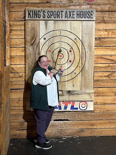 family friendly with safety in mind. you are given a short "how to' 'how not to' on throwing. then given pointers as you repeatedly attempt to land a shot to the bullseye 🎯. unfortunately I cannot remember our coaches name, but he was extra patient with our group and was able to suggest a specific axe that best matched that person. now that takes experience!!