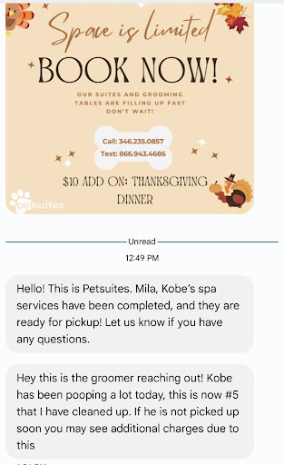 Customer support at PetSuites is top-notch. They were diligent in contacting me with any important updates throughout the day, ensuring I was always informed about my pets' well-being.