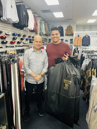 My fiancĂ© and Iâs wedding is in exactly 6 days and we were on the search for the perfect suit. Typically we will go to Express or Menâs Warehouse but I had encouraged him to try something different as he was looking for a real suit tailoring experience. We searched for suit shops and found Esquireâs. From the moment we stepped foot into the store, we were immediately welcomed like family. The owner came over in such a warm manner and was able to, without measuring, select the exact right jacket size, sleeve length, and pant size for my fiancĂ© by just looking at him. Which has always been a struggle for him. The owner offered many different styles and colors based off of what we were looking for. He was so knowledgeable of his assortment of product and had such a great selection to choose from, not to mention he had EXCELLENT taste. He waited on us in the fitting room as well. Unpackaging items without hesitation so my fiance was able to try everything on, selecting shirts, belts, shoes, that matched perfectly. While my fiance tried on, it was also a special interaction I was able to have. Not just sitting in the corner waiting for him to come out and show me, no, the owner and I shared a very special conversation about how the store became what it is today and how blessed he felt, he offered me water and showed me additional items we may need to complete the look. As if this wasnât enough, at the end of trying everything on, my fiance ended up with 3 suits, 3 vests, 3 pairs of pants, shoes, a belt, and flower accessories for the suits. As we were getting ready to pay, the owner gave us the information for someone near to hem his pants and gifted us for the belt and flower accessories and expressed blessings to us as a wedding gift. I truly cannot explain our gratitude for this business and the owner. This was such an incredible experience and memory we will forever cherish. We were blessed by coming into this store, and you will be too. I will be buying every suit for my fiancĂ© here and will forever recommend this business to anyone...
