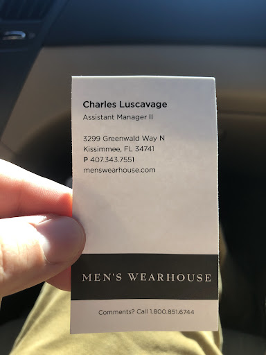 Read moreI only went to men's Wearhouse because my wife got her dress from Davids bridal and they gave us a $40 off all tuxedo rentals. They wouldn't take it but they kept raising the price. when I went to get fitted my first time they just came up with random prices without knowing I'd been online and knew how much it should be costing us. Started at $189.00 plus fees and taxes. It was supposed to be $112.00. They told me they fixed it. My groomsmen go to pick pay and the price is now $140 for all five groomsmen. We get them and I'm the groom and my shirt didn't fit and the Kissimmee mens Wearhouse employees didn't care at all. When I met up with my groomsmen, two people also had shirts that were too big or too small and two others had pants that were too big. Two of us had silver cuff links and four people had gold cuff links. A few different managers were nice and told me they fixed the price but it changed back to a higher amount three times. Worst place ever, they'll try to over charge whenever they can!!!! Plus the regular employees are rude and clearly don't care about doing their jobs right because something...
