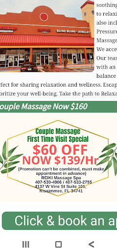 Read moreI arrived at my couples massage with my husband. The 2 ladies in the front also happen to be our massage therapist. So, every time that front door opened, my therapist left to attend the customer who came in. 10 minutes at a time, MULTIPLE times! Instead of telling the walk-in to come back later, she takes him and leaves me to attend him. She then placed cups on my back as a substitution for actual human hands. I was VERY upset by this point, but I didn't want to ruin the experience for my husband, who was actually getting a real massage. After 10 minutes, she comes back, removes the cups, and starts throwing creams on my face? Without asking me if im allergic to anything.( now i have pimples) Once my husband was done. I told him not to pay for my massage because i didn't get a 1 hour massage like i booked. After we dressed and left the room. They demand we pay full price for 2 massages after agreeing on the phone to the couple massage price of $139. And i would have no problem paying full price at $160 with a nice tip if i actually got the service i requested. Instead of taking accountability and apologizing for leaving me unattended SEVERAL times, she acted like she did me a favor by saying, " i did extra for you! " Are you kidding ? Extremely rude and unprofessional. I did not ask for cups or whatever cream she put on my face. Then to top it off, they demand you tip! Tips are based off the service you provided. Which you did not! You guys need some serious education in customer service and take accountability for your actions! I will...
