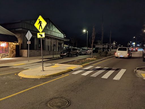 Great pedestrian facilities outside theater! (Although the curb ramps at the refuge island are sloped not vertical, not...