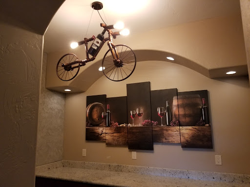 LOVE our Industrial Steampunk Pipe Bicycle Pendant Light from Rustic Deco, Inc.!! During a google search for a whimsical light fixture for our wine cellar, I stumbled upon rusticdeco.com and am so happy I did. If I could give this company a 10-star rating, I would! As mentioned online alongside the light's description, it is by far "...destined to be a conversation piece in your home..." Knowing that my husband is more conservative than I, with much hesitation I showed him the photo of the light fixture. He immediately said that this frivolous & unique overhead light fixture was definitely the perfect choice! (Three years ago we moved into our newly built home & did not just run out & buy a light fixture for the wine cellar. We both agreed that we'd know it was the "right" light when we saw it!) Okay, it was a no brainer at this point that I was going to order the light. However, after reading on RusticDeco.com's website "For those wanting something even more individualized, we also offer custom handcrafted furnishings...," I mentioned to my husband that it would really be cool to somehow include a bottle of wine on the light fixture. That was the beginning of something wonderful! I called the company & spoke to Terry Martin, Warehouse and Outbound Shipping Manager, who chuckled at my idea & was eager to make it happen. She communicated with the company's welder & then with me until the bottle holder design was exactly what we wanted. After several enthusiastic phone calls back & forth & multiple cell phone photos until the right size "wine bottle holder" for the bike was designed...coupled with her determination...Terry and the welder created a one-of-a-kind light fixture for us!! To make the welder's job even easier, Terry had an empty wine bottle available so that the welder would have the exact circumference needed. So, if you look closely at the attached photos, you'll see the unique addition of a welded "bottle holder" on our steampunk bicycle pendant light. That way, we can switch out the unopened bottle of wine at any time. Kudos to Terry who is a creative and charming people-oriented person!! It is a company like this one & a staff member like Terry as to why it earns a 10-star rating! In just one week our custom handcrafted light fixture was designed & shipped with superlative care. We will definitely be buying more things from Rustic Deco, Inc.!