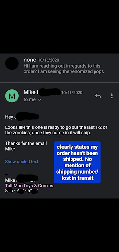 After waiting 10 months for a preorder, the owner has completely gone against everything I've been previously told and is claiming my order has been fulfilled. He is claiming to have just discovered a tracking number (that he won't give me). I never received anything more than a confirmation for my order. They refuse to stand behind their own words from October when I was assured my order would be sent shortly. I have given him months to fix this, to make it right and he never even cared to look into it until I asked for an update or a refund. They have stolen almost $100 from me and are treating me as though I'm the problem. I can not encourage you enough to take your business elsewhere.