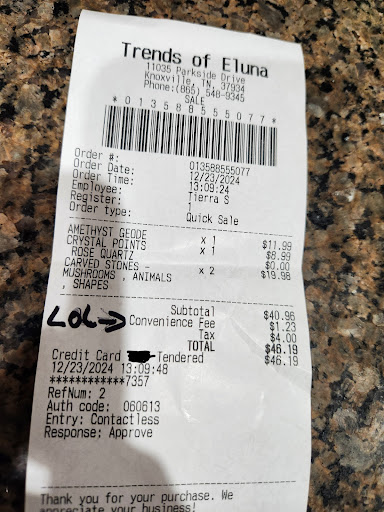 Now I have $46 of rocks i bought that I will not even be gifting my wife because of all this negativie energy attached. Also i noticed on my receipt a convenience fee. Lol. That's pretty tacky!