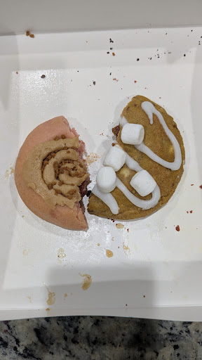 Read moreKiersten helped us tonight and she was just a doll. She asked if we had been there before and proceeded to explain the details of how things work when I said we hadn't. We ordered the sweet potato "mystery cookie," the strawberry blisscoff, and (not pictured) the brookie and the red velvet. These cookies are delightful! So heavy and definitely worth the money. We'll be having our other halves tomorrow! We were so excited to eat our cookies that I forgot to take...