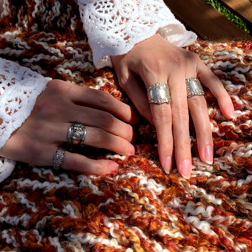 Let me tell you, if I lived in Wabash I'd go broke shopping at this store, not because their prices are outrageous (it's quite the opposite actually), but because I want it ALL! Between Maria's taste in the treasures she curates for the store, and whatever new thing Mike's creating in the workshop, this duo has discovered the magic recipe. Thankfully for out-of-towners like me, they're growing their business online, and I was able to indulge in a set of custom made rings, crafted from the handles of vintage flatware. I think they turned out beautifully, and I'm not the only one ... My mother has her eye on one that I might be having to part with soon!