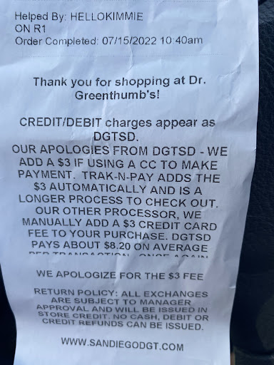 Ā Ā Ā Read moreLet me start over... Dr. Greenthumb is the best dispensary in San Diego County. The Bud Tenders are friendly and knowledgeable. The store is super clean and very well organized. Lots of flower choices and other goodies. Their hash is the bomb!!! Since I found this store a little over 1 year ago, I've only had one unpleasant experience with an associate regarding a delivery issue. The driver made things ok by listening and acknowledging my concerns and stating someone called out at the last minute and it threw off the deliveries. My only suggestion is for the associate to be honest and straight with me. Stuff happens! I just would have made the 40 minute drive instead of waiting more than 3.5 hours for a delivery. Regarding the associate, well yes, she was short with me and rude! But everyone has a bad day. Just watch your actions, you're NOT only representing yourself. BTW...Victor...