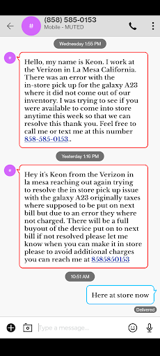 Read moreA Long Review: Prepare yourself or disregard now. đ¤ˇđ˝ââď¸ Verizon customer, for maybe 1yr or more, had AT&T previously. What's the difference? Who's network is most reliable? I had phone calls dropped with AT&T, yet their price was close to reasonable as they are expensive too. The thing is, adding lines is supposed to save you money according to their offers. However, if you choose to get a new phone or upgrade, due to paying on a phone for 12 months or more! You are left with the balance, so....what happened to your free phone, you might wonder? đ¤Oh, that was part of the promotion. You didn't stick to the promotion within the companies policies, so 𤡠the phone is not actually free. It's just to save you a few dollars than outright buying it out. So what did I do, I paid off my $333 balance on my A53 as this phone was lost in the flood week of Cali đ¤Śđ˝and my observation is only suggested unless you have the money to do this, otherwise, use the Insurance. I bought the 512GB Samsung S24 Ultra through Verizon ($900 plus taxes included). Customer Service is magnificent. Yet, I Realized Samsung directly sales the S24 Ultra 1TB Unlocked for about a $1009.99 with 650 off included with my S22Ultra Trade in as it is Locked by AT&T) So about $110 dollars more for an Unlocked đ 1TB version đ, is worth it to me. So I took the 512GB back and waited for the 1TB from Samsung. PLEASE BE ADVISED: Samsung doesn't ship this out to have any delivery carrier hold it. There are restrictions, and I missed my delivery twice. If not received by the intended recipient signed and/or by trustee, they will ship back to Samsung! Fortunate for me, I had someone to get it for me as I was at work that week. Anywho, went back to Verizon and Viola, an Unlocked Owned outright Samsung S24 Ultra 1TB, no montly charges on account for phone, no fees, you save for paying up front though it's costly, You can upgrade readily and get your money's worth or so you think as with all things depreciation but these Ultras hold some price hence my trade in. Verizon has been consistently helpful, and though some workers act as distant worker bees, they always mean well. I suggest still going with what's affordable for you as I plan to keep this phone for the 7 yrs of updates Samsung offers. The titanium is grade 2 on S24 Ultra, while the iPhone 15 Pro Max is grade 5! Anyway, devices are expensive, so navigate within your means. Verizon has its pros and cons as any company. I don't want to agree with the One-star reviews, but this location sometimes the workers seem distant and if you are not diligent and delve deeper into the fine prints of things, you may find yourself stuck in a buy as I did with the A53 phone when not going back in time though I was warned I had a limited time initially. I enjoy their reliable service, but their prices are too...
