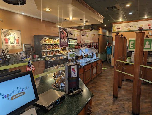 I got caught in construction traffic which routed all cars into this parking lot and after being stuck on Hwy 111 for 40 minutes, I decided I'd take a break and get some froyo. It was my first time at Yogurt Island and I was immediately struck by how beautiful the store was. Unique decor with elegant lighting, very boutique feeling. All customers wear plastic gloves to make your yogurt, which I appreciate. And I was surprised that the price of my yogurt was considerably less than another yogurt chain down the street that is lacking in ambience. The lady working there thanked me sincerely for coming in to try their yogurt, and her sweetness really moved me. I was given a card to get punched to get a free yogurt, which I have now used quite a few times. This is the only yogurt store I will go to now in the...
