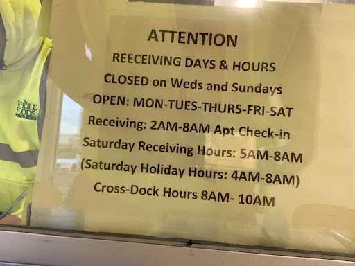Read moreReceiving opens at 0200. Limited parking along their private drive. Receiving office located closer to door #1. Indoor unisex restroom. Got in line to check in for 0300 appointment @0140 and was fifth standing in line. Bring pen to fill out check in form while you stand. Quick and clean. Respectful employees that actually enjoy employment with whole foods, and it shows. We all know what the " I hate my job" employee is like. Lol. Would definitely take a...