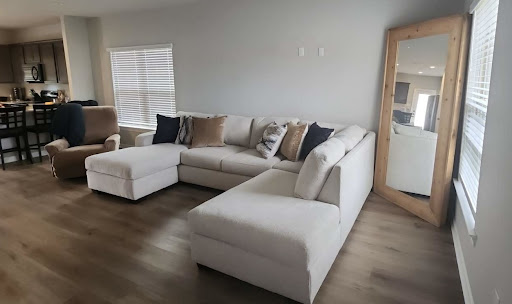 Next, a salesman by the name of Jeramie, walked up and introduced himself and discussed what she was there shopping for without being pushy or anything. She told him primarily a bedroom set but couldn’t find anything so she started looking at sectionals because we were looking to purchase. Coincidentally, she ended up finding the perfect sectional, at the exact size we needed, with the type of fabric we were looking for, AND a neutral color that fit our space!