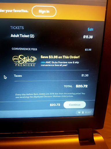 Read moreby far my worst movie watching experience in a theater. it hardly tolerable. the theater is showing its age and very run down. AMC charged a premium price and just didn’t deliver. i watched sonic 3 on a Thursday afternoon. it cost $28 for one ticket, icee and a (cold and stale) bag of popcorn. The staff were friendly and helpful, but that was the extent of the good. i was seated in auditorium 6. the ceiling tiles were falling down, the seats (stiff and uncomfortable), the screen was fuzzy and horrible picture quality (my biggest complaint). the previews started 10 minutes late, so i sat for almost 30 minutes waiting on the movie to start. before the previews started the screen kept flashing PC IN 720p… beyond sad that in the world of 4k Ultra HD a brand like AMC is still playing movies in fuzzy, blurry low quality 720p. Will definitely be driving to Columbus or Atlanta next time and pay the extra couple bucks for comfortable recliner seats, and 4k...