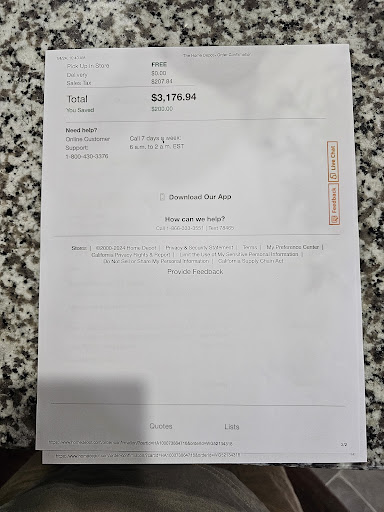 Ā Ā Ā Read moreThe staff was very unprofessional in the way they handled our situation. My grandparents wanted to order counter tops from them and had someone do an estimate when they were in the store and told them the next step was for them to pay and then they would send someone out to measure within 48 hours. So we called the store to pay and they would not accept our payment over the phone because it was too large of a purchase. (Which they never told us we would have to come back in the store to pay and schedule the person to come out) Then I asked if there was any way for them to take the payment over the phone because I had the estimate already. Then they told me that the person that did the estimate did not log it in the computer so we were going to have to come up there again and get everything in the computer and then pay. I reluctantly agreed to have my grandparents go back up there even though they had to drive 45 min to the store and get a wheelchair with masks and make their way to the counter section. So they did all of this again and when they arrived at the store the people in that department weren't working that day and sent them home and said no one in the store could help them. I then called and asked to speak to the manager about this situation and when I explained everything to the manager he never once apologized and just said I will have someone call you. Well when I received the call from home Depot it was a worker in that department calling to explain how the process works to order counter tops. š¤¦š»āāļø I knew how it worked but they were not working with us to get it done. Needless to say we will not be using them to do my grandparents kitchen...