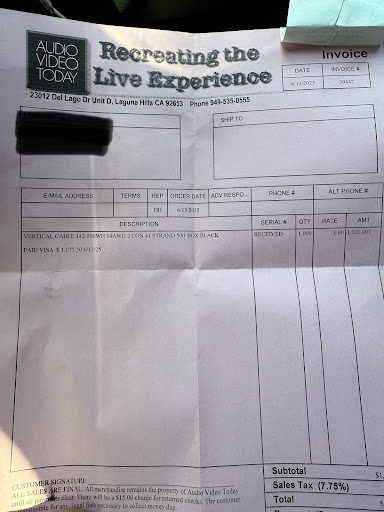 It's great having an Audio store in South OC especially one like Audio Video Today. These guys are real audiophiles and offer systems for every budget. They are dealers for many respected brands both digital and analog, tube and solid state and they can install your gear as well. They have a listening environment where you can test the gear you're interested in and their pricing is very competitive. Besides audio equipment they carry a full line of interconnects and power cords and they even have record cleaning machines. The staff are friendly and helpful and they're excellent problem solvers. No need to go online or to LA to find the gear you want. Go to Audio Video Today in Lake Forest off of Lake Forest...