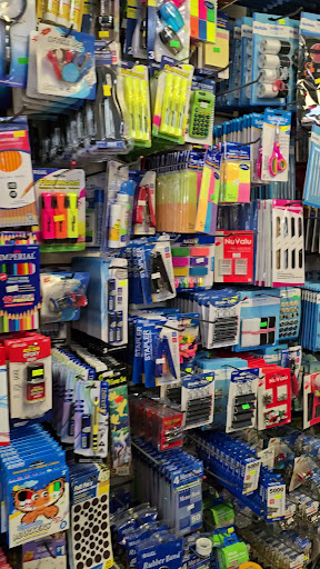 Office Supplies: erasers, notebooks, markers, pens, calculators, glue sticks, paperclips, push pins.