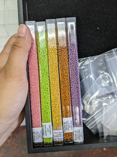 For about a month, I've been checking out different bead stores all across SoCal in search of large selections and varieties of beads. Bead Station was one of the bead shops I encountered when I was in Orange and in search of seed beads. This store has an extensive collection of beads for almost any project and the largest collection of delicas I've seen thus far. However, their 11/0 round seed beads appeared to have many colors out of stock when I went. While the 11/0 seed beads were given in generous portions of 25g, prices fluctuated greatly depending on brand (Toho and Miyuki are what I saw) as well as color. Prices can vary from $3 a vial to $9. When buying beads to restock, this can be especially daunting. Even so, the atmosphere of the store was quite alright and the customer service and assistance was appreciated. There were times where it felt I was being watched/followed by staff, but it was nothing too serious to prevent me from wanting to return. Overall, a good bead store with varied selections and a little bit of everything. Rather than calling ahead and seeing if certain products are carried, I HIGHLY suggest going in person as many products are simply up on the shelves and information regarding specific products is not readily known by staff. Also note that the store is a little hidden within the plaza it's located in! Drive around the area slowly and keep an eye out for the name of the store as all the signs for the shops in the plaza look the same (same color, font, size, etc.). âď¸âď¸âď¸âď¸ 4/5 stars! Might pass by again...