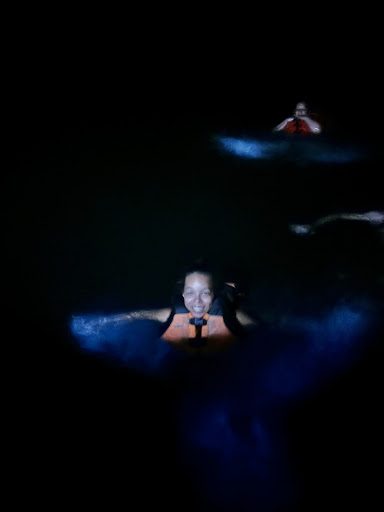 Upon arriving at the bay, you start to notice little sparkles in the water. Youâre not sure if your eyes are playing tricks or not, but you see them. Then you board your kayak and the second the paddle hits the water there is an explosion of light dancing in the water. As you paddle around, you dip your hands into the water, watching the light flare up around you. It seems too good to be true. Eventually you head back to the boat, and bail off of your kayak (in life vests of course) and drop into the warm salty water. As cool as seeing the bioluminescence from the kayak is, nothing prepares you for seeing it at eye level, while swimming in warm brilliant water. It is a magical experience. There is truly nothing like it. The captains lower a tarp over the pontoon/catamaran boat for guests to swim under, and in the absolute darkness the biolume is even more brilliant. So much fun.