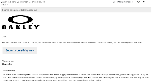 To be honest this is just as much as my review of the MSK3 as it is the store, but the Oakley website denied my review, so I'm going to post it here and the only reason I gave them two stars instead of 1 was because they refunded me without an argument, not sure if it was because of customer service or they just didn't care...