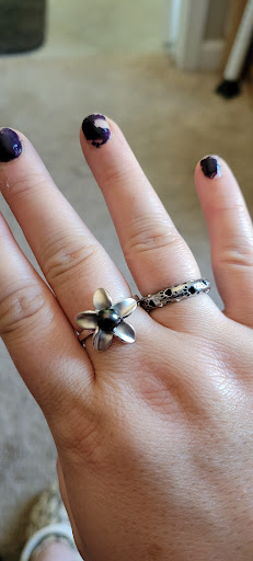 I was in search of a black pearl ring. Rebecca showed me a hibiscus flower ring with a smaller pearl. It was perfect. Then I wanted to pair some earrings with it too. I ended up purchasing a ring and pair of earrings. Once I had tried on the ring, I knew it was a perfect match for me.