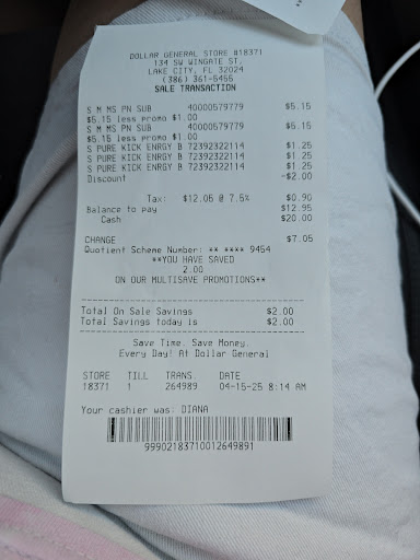 Read moreDiana is AWESOME! She helped me get a coupon deal and even find it in the DG app! She also checked the aisle to see what the deal was and actually help me with it instead of just writing it all off- she went out of her way to save me money! Give the woman a raise- she's an asset and y'all sure are lucky...