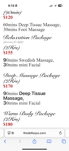 Read moreDO NOT GO HERE. This was the worst "massage" I have ever had. I do not understand how there are any positive reviews. I had two major problems with my experience. The first was that this was not a massage. I went in for a 90 minute deep tissue. I had lotion rubbed on me for 75 of the minutes which is not what I paid for. I am not sure this could be called a massage. Additionally, I asked for someone who could do deep pressure but instead was using lotion aggressively and my therapist had rough hands. Secondly, the atmosphere was horrible. I was cold the entire time. The blanket did not cover my feet (I am 5' 9") and they were extremely cold. The environment was not conducive to relaxing. The walls are extremely thin and the music from the spa only comes from the common space as there was no music in the room itself. I could hear every phone that was answered, conversation that happened, and running water. To make it even worse, the spa shares a wall with a tattoo parlor and that was the main music I listened to. Not only is this a waste of money, it is a waste...