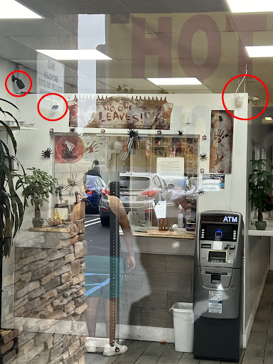 Read moreThey have an ATM Machine in store that I used - There are at least 3 to 4 Cameras surveillance Cameras very close to the ATM Machine as seen in the picture - Surprisingly there are many more cameras around for such a small store. Hours later that same day, I was alerted by my bank that my Debit Card # and PIN was used at POS without the presentation of the card...