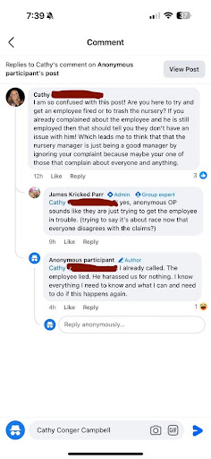 12/30/24 update: I voiced my grievance to vent and to get clarification on whether their dog policy has changed or not in a post on their Facebook page. I already left the group so maybe that's why I can no longer see it. If it's there, that's great but there's at least a copy of his statement here if anybody needs to refer to it. Fortunately, I took a screenshot of one of their "Digital Marketing Director" James Kricked Parr's comment who was gaslighting me for a potential racial discrimination incident with their employee who I now recognize (through the picture on their website) is Patrick. This is likely the same James P who has been responding to everyone in the store's Yelp page. Through Yelp, I also found out that Patrick has been mentioned in complaints about his hostility/aggression so this tells me that this is an ongoing issue for him and my partner and I were NOT an isolated incident. Additionally, this also tells me if this were to happen to another customer, there's a huge chance they will disregard it like they disregarded us. Whether they are aware of Patrick's behavioral problem or perhaps this is the kind of work culture they have there, I'll take gaslighting as a refusal to investigate his behavior. It's family owned, chances are these employees have been working there for decades and they will protect their own blindly (either that or maybe this is how management behaves and their employees are just reflecting management's behavior? idk), even if it's a possible liability. To erase any doubt that dogs are in fact allowed in the store, I am also including screenshots of James Kricked Parr advising other people in the store's Facebook group that dogs are, indeed, welcome. The comment was written 22 weeks ago which is the last week of July 2024. Here is a quotation from his comment: