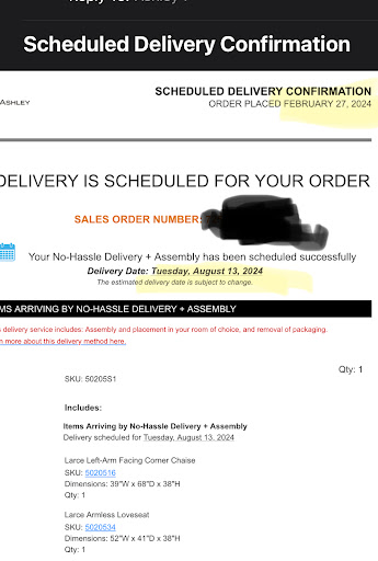 If you need furniture in a timely manner, don’t go here. I recently moved across country and needed to furnish the house I bought. I needed just about everything. I’ve had Ashely furniture before and it held up nicely so I thought I would give it another try. Considering I had no furniture, my first concern was the time in which it would take to have everything delivered. I went in, picked out some things before my closing date, and asked if they could be delivered the day I close. The rep assured me that they could, but when I went in to go pay everything off, they told me that they couldn’t deliver it until 5 days after the date I needed. Ok...I could deal with that. Well the day comes for the delivery, and they show up with less than half of what I bought. Not only that, some of what I did get was damaged so they had to take it back. 3 of the 6 dining room chairs had every bolt completely stripped out, my daughters head board for her bed had a chunk broke off the corner, and the dresser drawer for my dresser was broke. I called customer service to see where the rest of my furniture was, and when we could get the damaged items replaced. They informed me that some was on back order, some was on a different truck and so on. My husband and I both took a day off of work the day the furniture was supposed to be delivered to assure everything was good. Now we have to take multiple days off, and my daughter still has no bed. The rep on the phone refused to assist me in any way until the conversation got heated and I asked to speak to a supervisor. At that time she said “they will tell you the same thing I am but hold on!” She was a little more willing to help when she got back on the phone but never connected me to a supervisor. I called the local store to see why there was never any communication in regards to the multiple delivery dates, or why so many things were damaged. I ended up having to cancel some items as the dates were too far out, and my daughter is still out of a bed for another two weeks. Never again will I shop here. They are supposedly sending me a check for the delivery fee which was discussed prior to all of this and $200 for all the mess, but it took a long while and multiple conversations to get that. Needless to say, they are difficult to work with and their communication sucks to say the least.