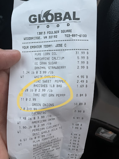 I have never had a bad enough experience that I would write a review on a GROCERY store but If I could give less than a star I would to Global food on 14183 Foulger Square in Woodbridge. Don't expect customer service at the Global store. When you ask an employee who works there a question, they right away say they "don't speak English," or worse say they "I don't work here!" The manager is also incompetent because when you complain to him about poor customer service (rude behavior) he also come out cluess and no help at all. We always ignore these behaviors, just do our grocery shopping and leave without any exceptions.