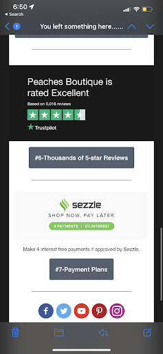 Read moreFantastic Experience!! Went to Peaches to purchase my daughter's prom dress with a bit of hesitancy because of the negative reviews. Our experience was seamless. Arrived at 12:05 pm on a Friday(literally 5 minutes after they opened) and was number 26 in line. Lots of people, but also a lot of staff to help assist. They greeted me right away at the door and gave me instructions to pick out 3 dresses from the floor to try on(handed to sales associate as you pick them out), then register, then get your favorites list printed out to have with you when you head back to the fitting room. Creating a favorites list is a very important step that you must do ahead of time-requires going to the website and choosing dresses that are your "favorite" so they understand your style. This allows the sales associates to narrow down the selection so you are not overwhelmed and get you a dress you love. We waited about 15 minutes before we were called back to start trying on dresses. The staff was super helpful, my daughter never felt any pressure to make a rushed decision, they had good suggestions, listened to what my daughter liked and she ended up finding the perfect dress. She then found the perfect shoes and perfect jewelry there too! The process is very regimented with very specific rules/instructions to ensure efficiency and protection of their merchandise. It gave me peace of mind knowing that the dress we purchased was handled only very carefully by attentive staff and not thrown around by careless teenagers. I think the complainers and negative comments come from people who don't want to follow rules. This is a business, they are trying to provide you with an efficient experience with quality merchandise. They have a huge amount of inventory they have to keep track of and protected so that people will want to buy it. No one wants a dress that has been on the dressing floor, the sequins are falling off or the zipper is stretched out. I have seen that at most other stores which offer prom dresses because it is a free for all. The total process took 1 1/2 hours. There were 4 of us total-3 watching and 1 trying on and we all said we loved the experience and would go back again! A huge thanks to the "mom" who works in the shoe department and has since the day Peaches opened and to her daughter who works in the fitting area. The mom's attention to the detail with the shoes, jewelry and minor alterations needed was so sweet. Highly...