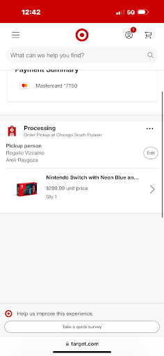 So today march 27 I made an order of a Nintendo swicth online in the afternoon at 12:42 and online it told me that I could pick it up in 2 hours, well I arrived at target at 3:45pm, I walked in to claim my order and I opened up my email and come to find out that they sent me an email at 2:11 saying that the nintendo was out of stock and that I could pick it up in another store, I decided to check if it was really “out of stock” I walked to electronics and come to find out there is 2 of them in stock in my opinion there is no way they got back in stock in 1.34 hours from 2:11pm to 3:45, I paid over 300 dollars 331 dollars to be exact, after that I waited over 15 minutes and there was no one at electronics, so I decided to go upfront and I talked to a representative I dont know his name, I told him I was here to pick up my order that supposedly is not in stock but I was definitely in stock i told him since Im here I would like to just take it instead of going to another store, he told me I couldn't do it and that I would have to cancel that order and just buy it at the store, well I did and went back to electronics to buy it again i waited like 10 minutes and finally someone came and I was able to buy it but at a different and higher price, that was some shady business of This Target and Im totally disappointed by this customer service. Here are the pictures of the first order that got cancelled, and the receipt of how much I had to paid in the store for an item that was...