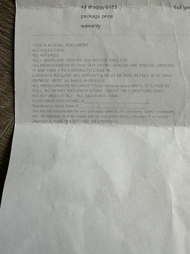 Please BE CAREFUL before buying anything from this furniture store. We were completely scammed. The furniture they have in the showroom looks nice and high quality, but what they actually deliver to your home is completely different â cheap, low-quality versions that start getting damaged almost immediately.