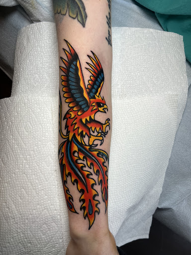 Read moreI came across Julia’s work and instantly knew that I wanted to work with her on a phoenix design on my forearm. From start to finish, the entire scheduling and tattooing process was so smooth and easy to do. I filled out Julia’s form and heard from her within a day or two. We scheduled the date and all of the planning was straightforward and easy. The day of my appointment, I walked into the shop and everyone was so welcoming and kind. I was absolutely blown away by the design Julia gave me for my tattoo and I was so excited to get started. The entire tattoo process was amazing. Julia took the time to ensure I was comfortable and periodically checked on me to make sure I was doing well during the process. The end result turned out better than I could have ever expected. I have never been happier with a tattoo and everyone I have shown has loved it. I would recommend Good Omen to anyone looking for a traditional style tattoo and I will personally definitely be going back! Thank you Julia for such a warm, welcoming shop and for the...