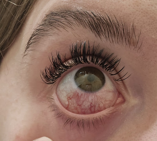 After a little over two hours, we were done. I didn’t feel any burning right away just some discomfort I thought was from the tape and closing my eyes for a while. My eyes were watering so we had a fan on my eyes for a bit then I paid (over $100, not including the tip) and left. Later that day, my eyes turned extremely red and irritated. The next day, I found out I had a chemical burn, likely caused by her opening my eyes during the glue application.