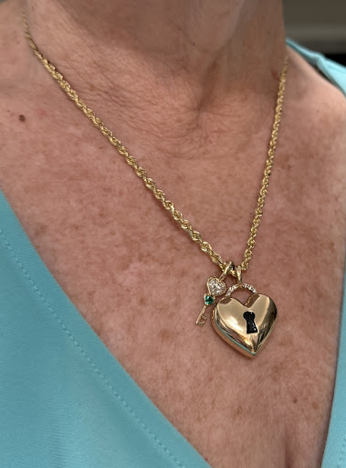 Kevin Jack Jewelry in Lakeland, FL created a piece for our family that is beyond words. He designed a solid gold heart pendant containing my husband’s ashes with custom engraving on the back. Next to the heart, is a key with an emerald on the chain because my husband was a locksmith and he will always “hold the key to my heart.” What made this even more meaningful is that the gold came from my first wedding ring that my husband gave me years ago. On the back, the there is an opening (completely secure and screwed in tightly) that my daughter can then add my ashes when I pass and carry us with her always.