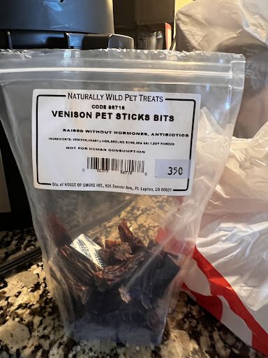 While I was in Denver, I decided to search for a local butcher for Marrow bones for our dogs.. I came across this businesses and decided to look at their website.. Their website mentioned Venison & Elk which peaked my interest so Decided to check them out.. They’re popular as there where a few ppl in the store and more coming in. When you step into their shop, it reminds you of one you see in TV shows.. For me, I felt like I was in a candy shop. We picked up some various Brats, One having Elk in it.. We found really great size marrow bones.. one thing to add that I love bout this butcher shop that this is the only shop I’ve found so far to do this (not saying other shops don’t do this but I’ve yet to come across them) they have (I would say gallon size bags however, I’m just eye balling it) dollar coin size marrow bones for small dogs and puppies so they don’t get left out! The price for marrow bones where fantastic!! The bones for the bigger dogs aren’t a small dinky size.. They have them in a freezer in separate bags so you get to be in charge of the size. The ones for the smaller dogs and puppies are in the same deep freezer but separated. They also sell Venison and Elk bites for your Pets (not for human consumption) at a really reasonable price.. All the ingredients (very few) are listed on the label.. so not only can you enjoy Venison & Elk but your pets (dogs) can too! They also sell potato salad, macaroni salad, salsa and various cheeses. They also sell thin cuts of veal which is hard to find.. They’ve oodles of other stuff and if you love meat & grillin, this is the place for you!! The brats were fantastic!! Mouthwatering!! Full of flavour!! This butcher shop is definitely worth going back to over & over! The amount of stuff I bought and what I bought, I was shocked at how much it came to!! Definitely, in a very good way!! I didn’t spend nearly as much as I thought I had. The staff (I’m pretty positive it’s family owned butcher) where fantastic!! They where always there to help if you had...