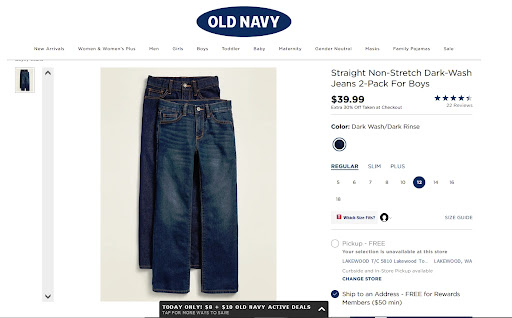 Buyer Beware; Yesterday I returned 2 pair of boys jeans I bought online to the Lakewood store. They were in new, pristine condition, with all original tags attached. I had them in the original shipping bag, with proof of purchase. I explained to the sales clerk all I wanted was to exchange for a larger size. I was told they could do an exchange if I chose the exact same jean. I looked on the sales floor and was unable to find any of the exact jeans. So I chose 2 pair of more expensive jeans, and shoes (a $75 purchase) and then came back to the check-out. The clerk rang up my return, and told me I would be getting $8 dollars credit returned to my account. $8 .. for 2 pair of jeans. ($4 each.) (By the way, these jeans, with the exact order number, are currently listed on their web site at a regular price of $39.99.) Because I had used my "Reward Points" ... I was not allowed to transfer this amount to my new purchase. So, I was only given a credit of $8. My remaining Reward credits were kept by Old Navy. I was told (by a clerk who could care less) that Rewards may or may not be credited back to my account. And, if it was, it would take about 2 weeks. Good-bye.