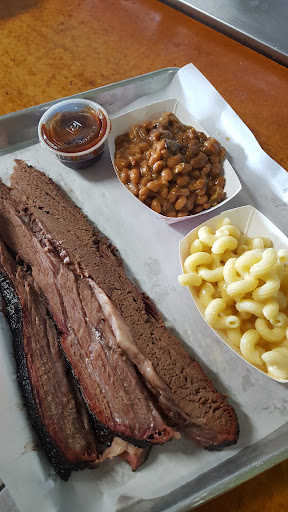 First time here after multiple attempts. We've had BBQ all over the country. This was very disappointing. We ordered the Big Pound Sampler. Menu says it's pork, chicken, brisket, and sausage. We also opted to add the ribs for $5. First the ok: the sausage and pulled pork were fine, nothing to write home about but not worth coming back for either. We got 2 ribs for our $5. They were ok but weren't fall off the bone or anything. The bad: My judge of good brisket is if I can eat it without BBQ sauce. This one, even WITH BBQ sauce it was dry as a bone and no flavor. But the biggest disappointment was getting 3 naked wings for the chicken on this platter. At a BBQ joint I expect BBQ chicken, pulled chicken, etc. not naked greasy inedible wings.