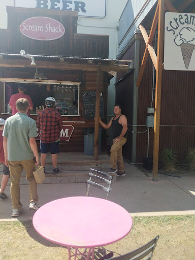 What a popular spot when you first pull in to town! On a hot summer day, it's the perfect treat to cool off. Menu is cute. You say ice cream and the second word sounds like scream. So you order by how many screams you want. My son ordered a one scream cone of his favorite, mint chocolate chip. It was equal to about 3 scoops! I loved my kona coffee sundae and went with the servers recommendation of sugar cone sprinkles. He was shocked. He said no one ever goes with his advice. I don't know why not. It was a great recommendation. The place was busy. Waited a while to get our turn but good things come to...