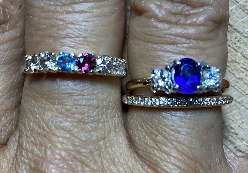 Once again, Mark out does himself not only in the quality and beauty of his work, but with his customer service and care. For my 30th Wedding Anniversary, my husband went to Mark to purchase a gift. He picked out some beautiful sapphire earrings. Mark told him that if for any reason I did not like them, we could return them. Well, I did love them but I have another pair almost identical other than the color of the sapphires. When we went to see Mark, I took a diamond anniversary band that was one of my grandmothers. It was missing a diamond and needed some repair. Mark noticed one of the other diamonds was actually not one (he took the time to show us what to look for). I thought I could add a garnet and an aquamarine in the 2 spots. We also bought a diamond anniversary band that Mark attached to a sapphire and diamond ring I got when I turned 40. When we went to pick them up, the rings were beautiful! I left very happy watching them sparkle! After the weekend was over, Mark called and said he got some new stones in that he thought would look even better due to their color. After replacing the stones, he was absolutely right! I love them even more! Mark is such a genius when it comes to creating beautiful jewelry. I highly...