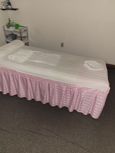 Quiet place with soft music playing. She was friendly and engaged in small talk a couple times. Asked for hard pressure and she delivered. Spent more time than usual without oil, so that part felt rough. The room was spacious and sparsely decorated and low lighting. The towels did smell a little musty though. The room was at a very comfortable temperature so I didn't mind the minimal draping. She didn't spend much time on the chest or stomach either. I had the older woman, but there is another woman working as well. $70 for 1 hour plus tip. There were several interruptions for phone calls and she left the room for a little bit two times to get hot towel and oil, but I still got one...