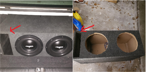 About 3 weeks to a month goes by and it's not sounding any better. I end up meeting a car audio guy who does mobile work who also builds enclosures himself and I had him look at my setup and within seconds he 's like "your port is way too small, the enclosure is built for 12s but it looks like you port is built for 10s (mind you no measurements were taken, it was a guess at that moment). I ended up asking him if he could build me an enclosure which he agreed. I paid $225 for my 3rd enclosure and finally my subs are hitting to their full potential. Now the recommendations for my sub's enclosure are the port area is 29.75 square inches per sub and port volume is 1.8 to 2 cubic ft per sub. The port area is the issue, the equation for area is height x width, inside to inside for the port is 12.5 inches in height and 2.75 inches in width which equals 34.375 (12.5*2.75=34.375), again for 1 single sub 29.75 square inches is the recommended port area and 2 are sharing 34.375 square inches.