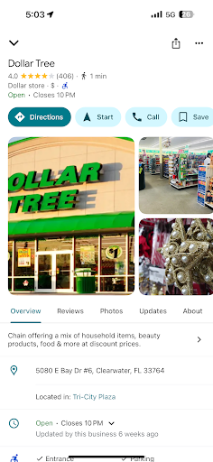 Read moreGood selection of businesses but the East Bay Drive entrance and exit leaves alot to be desired as well as all the brick paving within the plaza which erode causing alot of dips you have to deal with. Rough on the vehicle with all the man hole covers, beats your vehicle to death if your intent upon exit from the plaza is to head West on East Bay Drive. Plus a lot of traffic from North bound and south bound US 19 trying to merge into East Bay presents collision risks with too many entrances into the plaza that many try to utilize, plus a traffic merge lane leading onto East Bay which just causes more congestion. Not to mention traffic exiting from 19 crossing over three Lanes of traffic to enter the plaza from the 19 access road, where several accidents have already occurred. It's all just a congested traffic mess that makes me want to avoid the entire...