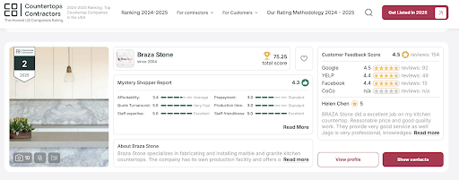 The Contractor's truck leaked oil on the asphalt (street) in front of the driveway and the Owner had to clean up mess (due to strict hoa rules) in order for Owner to not to receive a fine from HOA. The Owner and Manager of Braza Stone LLC. should not be proud of their unprofessional and sub-standard prefab granite countertop install at my home as they made many, many rookie mistakes and behaved very unprofessionally when presented with problems to resolve. When Braza Stone LLC. has called the Owner, they never leave a message, terribly unprofessional and not helpful.